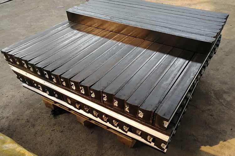 緩沖條是用來對落料口的輸送帶降低物料沖擊處理的一種材料,通常配合緩沖床進行使用。不同的工礦條件,不同的皮帶機設計,不同的使用環(huán)境,不同的安裝尺寸決定了緩沖條規(guī)格及樣式有所不同。緩沖條用優(yōu)良的高彈性特種橡膠層充分有效的吸收了物料下落時的沖擊力,大大降低了物料下落時對輸送帶的沖擊,改善了落料點的受力狀況。使輸送帶與緩沖條之間的摩擦系數(shù)降低且耐磨性好。