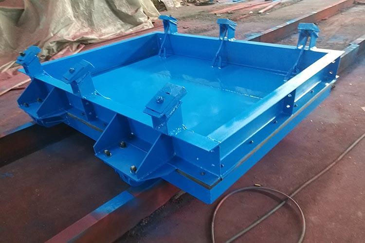 防水防火密閉門(mén)是煤礦井下主要的安全防護(hù)門(mén)之一,用于井下主變電所和主排水泵房通往井底車(chē)場(chǎng)的通道內(nèi),容易關(guān)閉,以防止水的突然浸入,承受壓力可達(dá)98KPa。防水防火密閉門(mén)門(mén)扇為平鋼板、井字筋板、圈梁等組焊而成,門(mén)框?yàn)椴垆?、工字鋼組合框架結(jié)構(gòu),拉緊裝置為楔形滑塊楔緊,安裝時(shí)按我廠原有設(shè)計(jì)將門(mén)組裝好,按照事先預(yù)留好的位置將門(mén)與硐室門(mén)口連成一體。